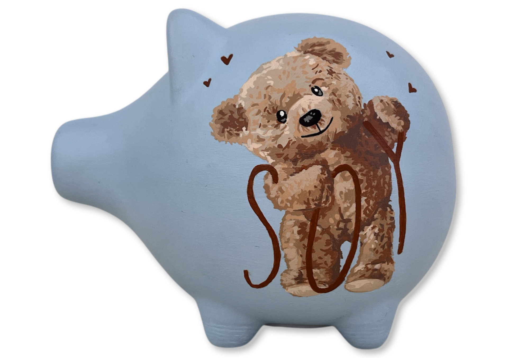 Gemaakt van klassiek terracotta en volledig met de hand beschilderd op basis van het geboortekaartje of een eigen ontwerp – van naam en geboortedetails tot vrolijke figuurtjes en kleuren. Een spaarvarkentje om voor altijd te bewaren.